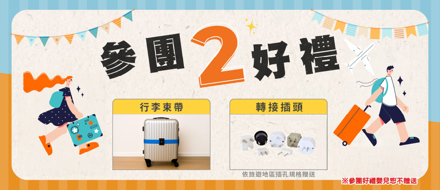 ◆ 含行李束帶每人一條、轉接插頭每人一個。